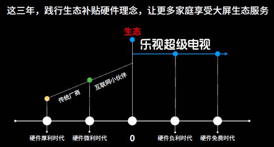 樂視通過生態補貼硬件,低于量產成本定價,引領電視行業率先步入硬件負利時代,直至硬件免費,彰顯了樂視對整個開放閉環,極難復制的生態系統的自信,標志著樂視生態更加成熟,邁入全新的發展階段,生態自孵化、自進化、自創新、自循環能力更加強大,能夠更好的持續創造全新的用戶價值,全面領先處于硬件厚利時代和微利時代的傳統家電廠商、互聯網廠商。