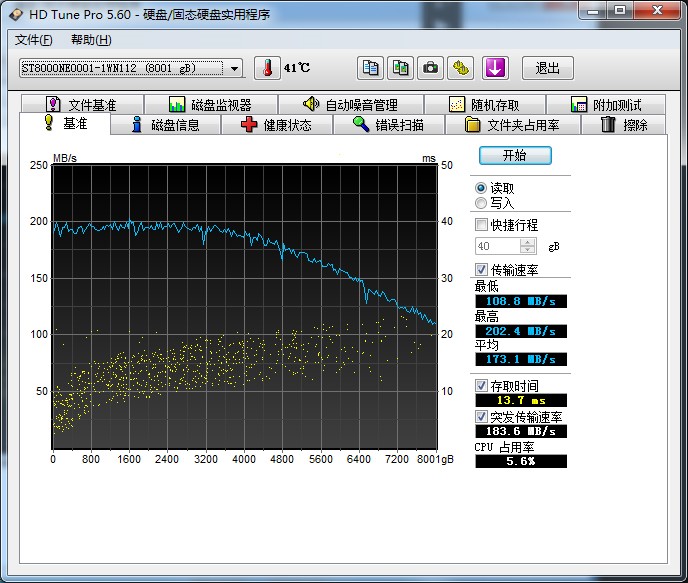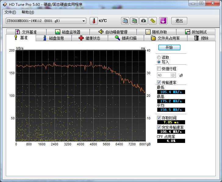 平均讀取達到了173MB/s。平均寫入速度達到了156MB/s