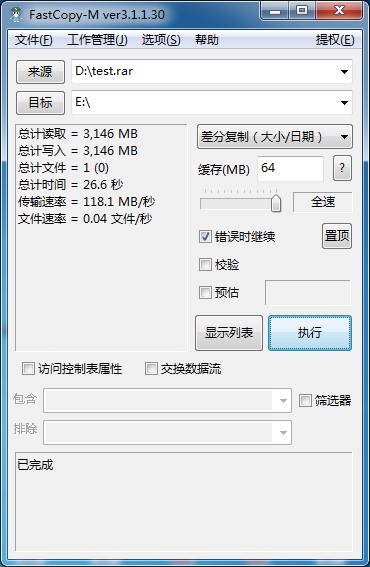 我們復制了一個3G大小的文件,平均寫入速度為118MB/s