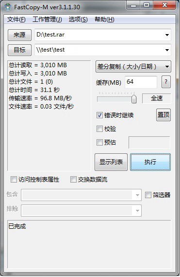 可以看到硬盤在NAS中運行良好,然后我們用FastCopy對NAS進行讀寫測試。