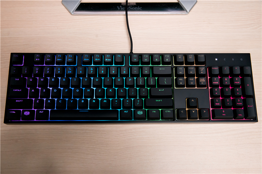 酷冷如今主打RGB的新產(chǎn)品在可玩性上都有極大的自由度,通過(guò)Fn鍵與F1-F7鍵的配合,CS100鍵盤(pán)能夠進(jìn)行燈效模式的切換、燈光循環(huán)速度的調(diào)節(jié)、甚至獨(dú)立操控RGB三色進(jìn)行色彩組合,手動(dòng)調(diào)節(jié)自己喜歡的顏色。這里演示一下各燈效模式的切換和RGB調(diào)色功能。