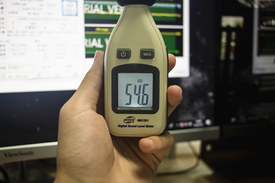 不過(guò)燈光再酷炫,我們終究要回到散熱器和機(jī)箱最基本的功能上來(lái)。這里我們用采用AIDA64單烤FPU,溫度被穩(wěn)穩(wěn)地壓在77℃,冰神G120 RGB的表現(xiàn)得不錯(cuò)。而此時(shí)的機(jī)箱噪音保持在50-55dBA ,H500M在聲音方面的控制相當(dāng)給力。