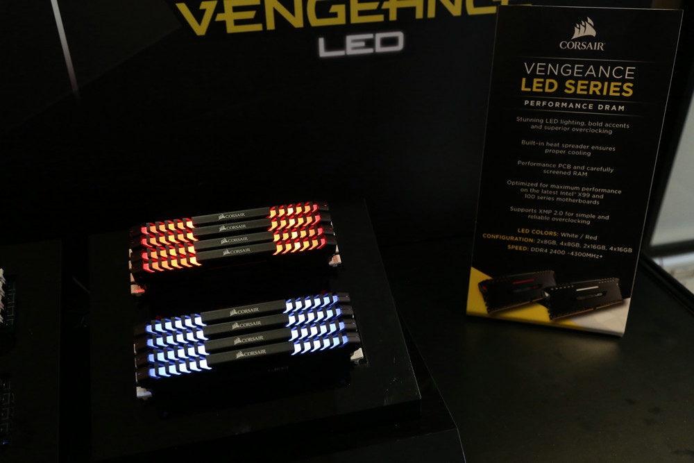 現場海盜船還展示了全新的PLATINUM系列DDR4內存,改進了發光設計,白色更有質感。存取速率最高達3300 MT/s。這系列產品除了3300MT/s還有兩個型號存取速度分別為3000MT/s和3200MT/s。而且高階版本能穩定的運行在4400的頻率。