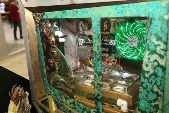 現(xiàn)場擺設(shè)了一臺由國內(nèi)知名MOD大師刑凱先生親自操刀的MOD機(jī)器,以御龍在天游戲背景作為MOD主題和創(chuàng)意,成功MOD了一臺精致的“御龍在天——武圣”。并于本次簽約儀式后在京東拍賣場進(jìn)行拍賣,截至到簽約儀式結(jié)束,拍賣價已經(jīng)達(dá)到了50500元。
