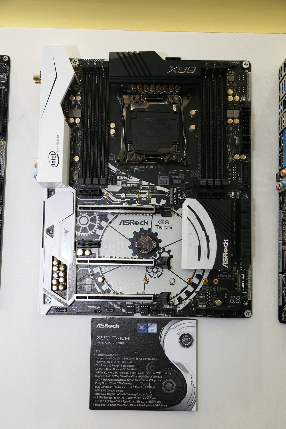 要說全場最大的亮點也就在于這款全新的全新X99以及Hyper系列主機板,全新的X99TaiChi以嶄新的設計風格出現(xiàn)——太極,官方意在其可以剛?cè)岵娜莶黄鹊膶Ω睹恳坏离y關(guān)!如水般靜止、如風般無形、如鐵般堅硬!