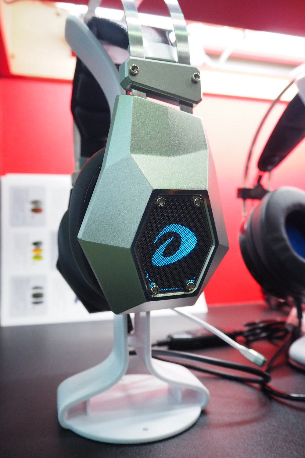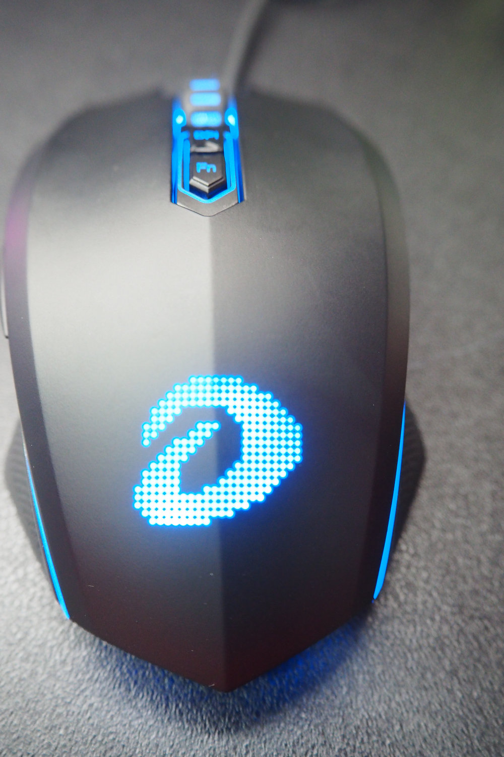 現場展示了達爾優進化者系列游戲耳機、達爾優機械合金RGB版本鍵盤以及一系列的游戲鼠標。而達爾優的新產品EM905游戲鼠標卻成為了全場焦點,這款達爾優首款使用全新Logo 標志的產品,由數碼點陣組成的新Logo看上去更加高端大氣。