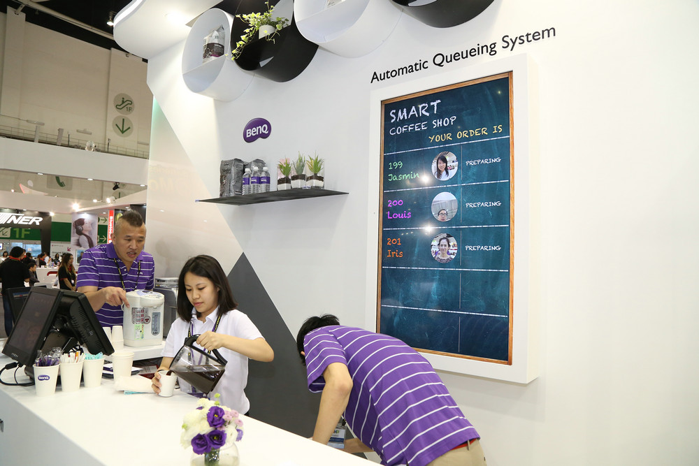 在Computex 2016上,明基BenQ以“智慧社區”為主題,展示了更為深入的未來生活各方面的商用智能解決方案,并且強調“物聯網、云端運算及大數據”的整合運用。 “智慧零售”強調的是通過將銷售時點情報(POS)系統、監控設備及商店管理系統(SMS)進行整合,從而提供足夠的便利性;“智慧制造”通過結合搬運、倉儲、環安及物聯網監控,滿足未來工廠的需求;“智慧健身房”通過將穿戴設備、物聯網及云端運算進行整合,為團體健身情境提供更多可能;“智慧教育”則是通過串聯課前中后軟件及硬件,為未來的教室打造新樣貌。