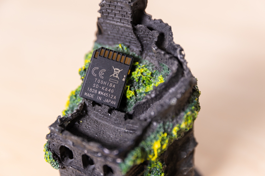 存儲卡為綠黑色調,內置東芝3D閃存顆粒,背面顯示存儲卡產品為日本制造。