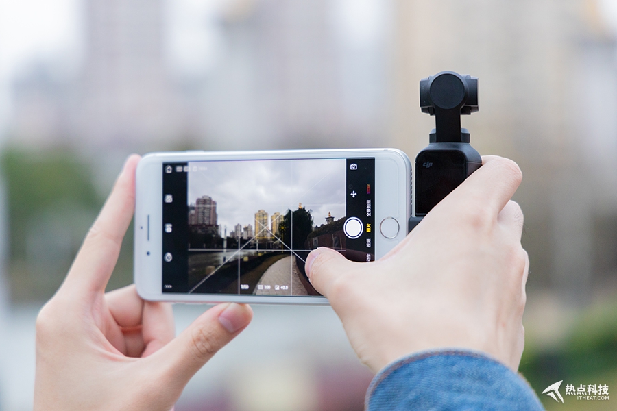盡管它能通過轉接頭連接手機使用,實現手機操控云臺的效果。不過裝上手機后拍攝的便攜性就不如直接拿Osmo Pocket操控了,加上Osmo Pocket本身就有一個觸摸屏,我決定先不通過手機App,直接使用Osmo Pocket進行拍攝。