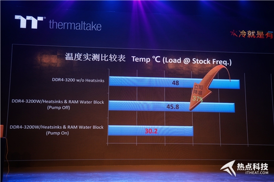 在Water RAM水冷散熱內(nèi)存的多重散熱模式之下,內(nèi)存顆粒溫度能夠有效地被控制。Tt宣稱其在實(shí)測中能夠有效降溫37%,將內(nèi)存溫度始終保持在30℃左右。這對于有著內(nèi)存超頻和極限散熱需求的玩家來說,無異于福音。