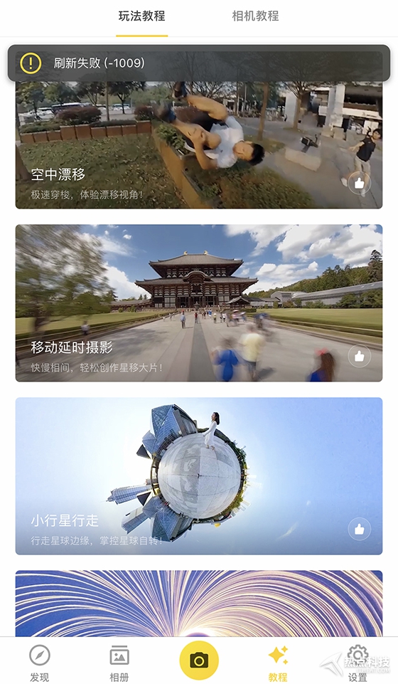 在APP內(nèi)還內(nèi)置了一些功能拍攝和玩法的教程,幫助用戶(hù)更好的使用相機(jī),如果是手機(jī)連接相機(jī)情況下,需關(guān)閉連接即可查看。