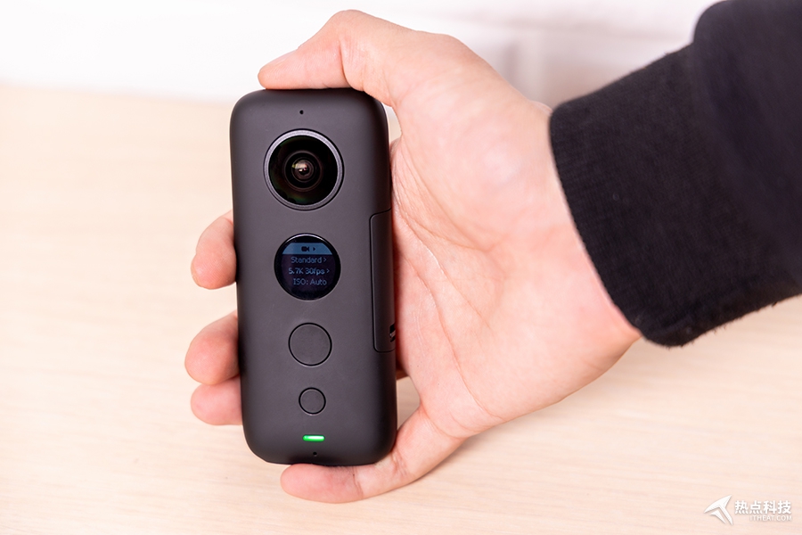 相較于ONE,ONE X盡管在體積上確實(shí)要更大了一些,但由于機(jī)身表面為類(lèi)膚質(zhì)設(shè)計(jì),因此手感還是不錯(cuò)的,并且握持時(shí)不易從手中滑落。不過(guò)前后這兩個(gè)魚(yú)眼在放置時(shí)需格外小心,稍不留神就容易在桌面上刮出一道劃痕。個(gè)人建議平時(shí)攜帶這臺(tái)全景相機(jī)時(shí)放在掛繩保護(hù)套中,這樣既不容易劃傷鏡頭,并且攜帶也十分方便。