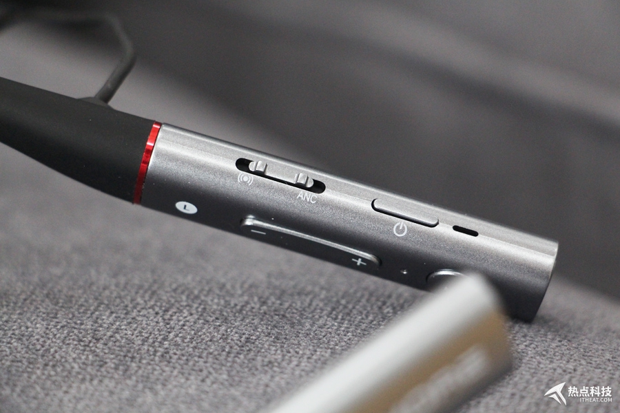 可能是考慮到大部分外貌黨對顏值的重視,1MORE降噪圈鐵耳機兩端采用了鋁合金材質,用標志性的紅圈點綴。左耳集中操作按鍵,耳柄內側有音量加減和播放暫停鍵上方集中了降噪開關和開關機/藍牙鍵等,鍵程反饋清脆。如果是第一次盲操控制這些按鍵的話,想要不費勁的找到對應功能,有點難。