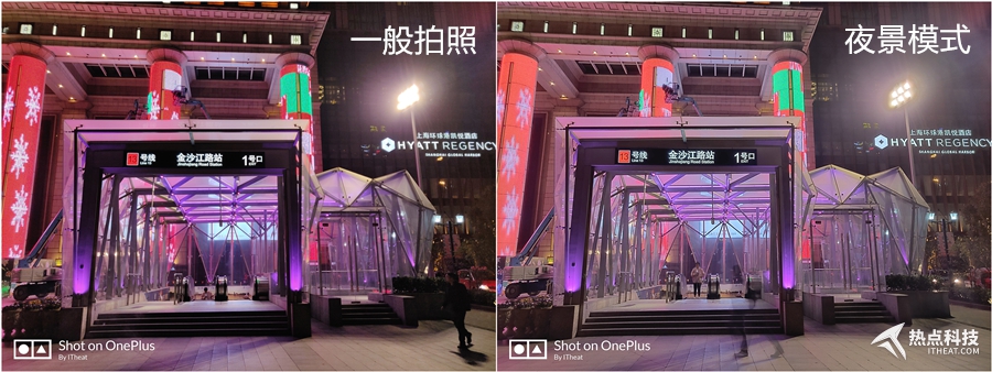 一加對主攝的調校水準在正常的拍攝模式下就很到位了,在一般情境下對高光光源的壓制就能讓照片可用。有時候即便切換至夜景模式,相機也會自動判定無需2秒的多幀合成拍攝,一下就完事,和正常模式出片效果一樣。