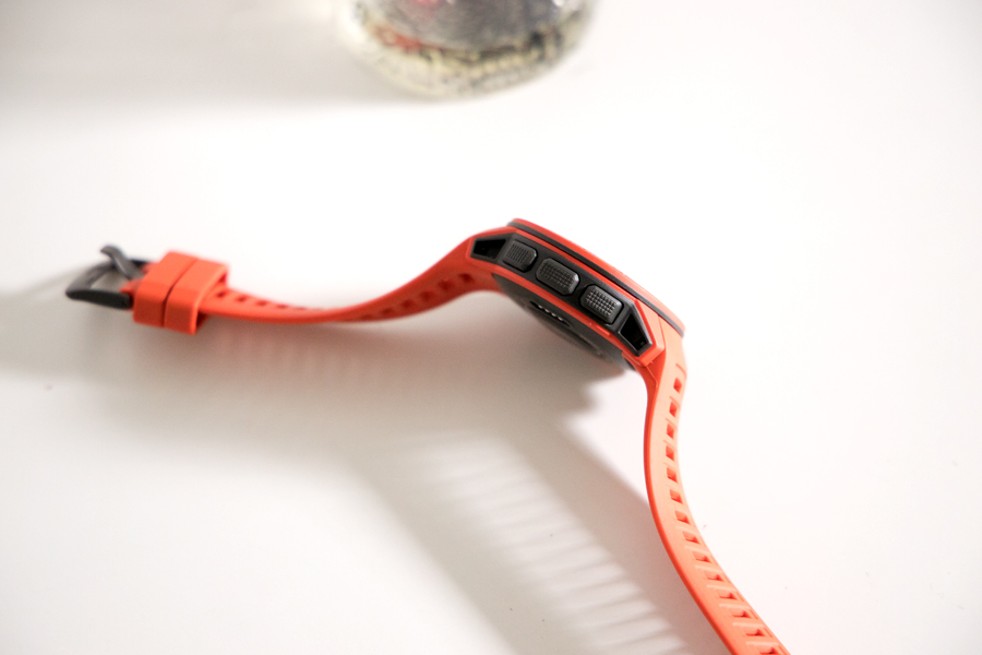 于是在大,笨、重、黑占據(jù)了專業(yè)級戶外運(yùn)動手表的當(dāng)下,紅黑配色的Garmin Instinct(以下簡稱Instinct)顯得格外活潑。45mm的紅色表盤乍一看還挺像CASIO的G-SHOCK,不過隨之而來的塑料感也挺扎眼,它僅重52g,對小手腕來說表盤稍大,上手后很輕,手表帶異乎尋常的柔軟。