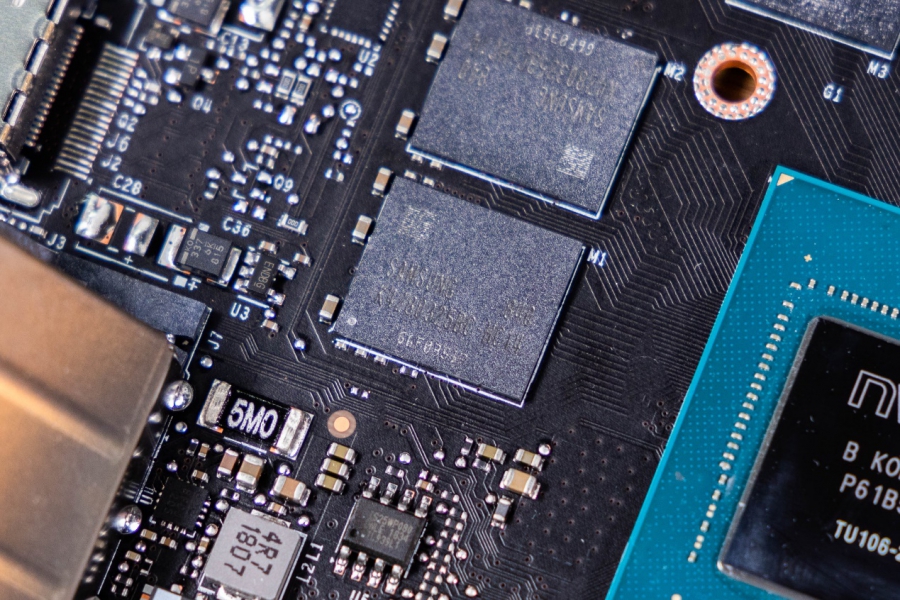 顯存的位置空焊了兩顆,顯存采用的是三星的GDDR6顆粒,這點(diǎn)絕對(duì)好評(píng)。老司機(jī)都知道,三星顯存就是“能超”的代名詞。坊間傳聞早期的公版RTX 2080Ti由于采用了美光顯存而導(dǎo)致花屏故障,隨后NVIDIA在新批次中就采用了三星顆粒解決了問題。這個(gè)傳言的前半部分不知真假,但至少說明RTX 2060是新批次產(chǎn)出的