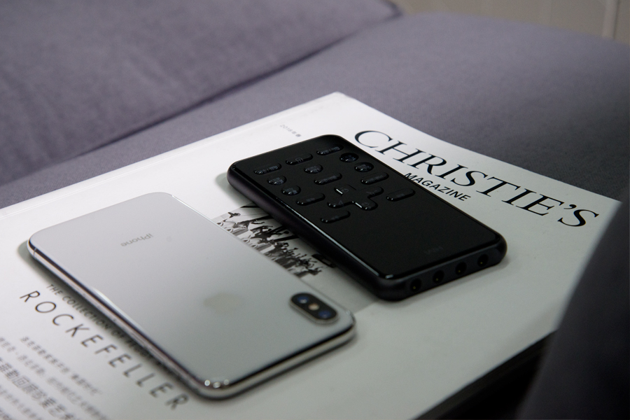 事實上不止我,身邊的小伙伴剛開始都是一頭懵的狀態,好在拆開包裝看到主機上的變聲、烏鴉等字樣,才恍然大悟原來惠威真的弄出了一臺直播聲卡。只是沒想到聲卡也能做得這么精致。惠威ML1000設計走向呈新銳工業風,單手掌握的反饋感就像是一臺有屏幕的MP3吧。加上高硬度亞克力的材質和鋁合金的包邊,遠觀起來有種濃郁的“蘋果風”,直觀惠威ML1000略小于5.85寸的iPhone X,放入衣服口袋完全沒問題。