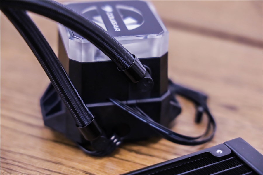 Helor 240的冷頭非常高,骨伽也很好地利用了這一點,將水管呈高低安裝。這樣的設計使得其在轉動時有更大的余地,相當實用。