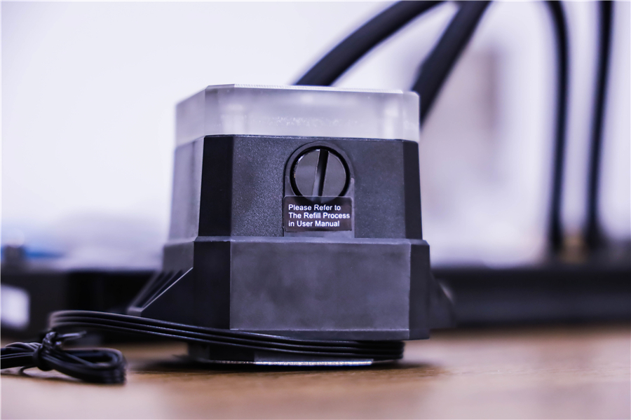 冷頭另一側為補水口。骨伽還為Helor系列散熱器隨包裝附贈了冷卻液的補充裝,玩家可以自行進行增補維護。