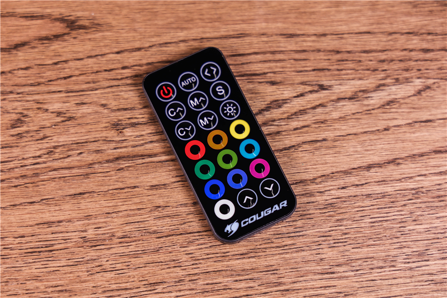 作為新一代燈廠,骨伽在RGB系統的整合與控制方面考慮得相當周到。配合集成式RGB控制盒,我們能夠通過自帶的遙控器對機箱和散熱器的光效進行非常細致的控制。