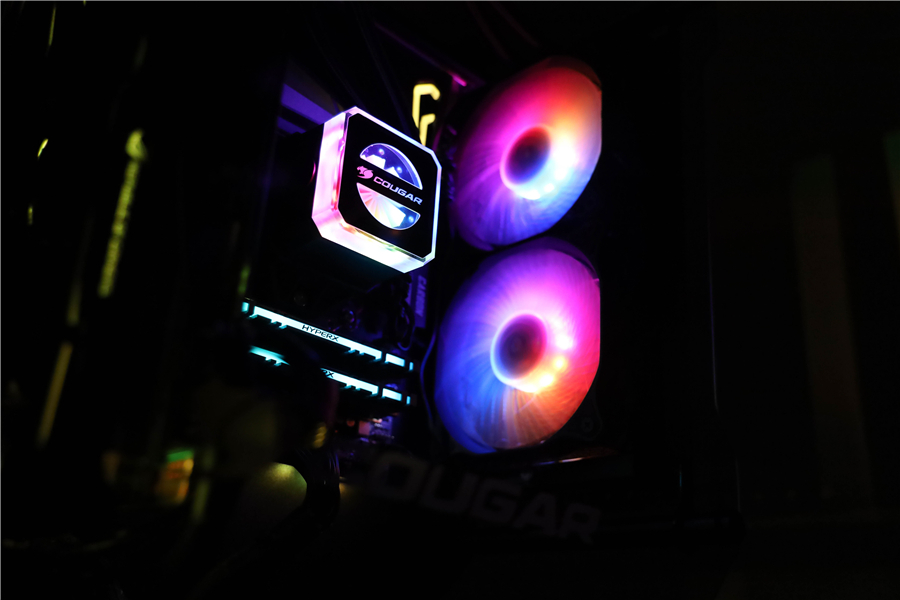 通過RGB控制盒將機箱散熱及各個部件連接在一起,再通過3Pin ARGB連接線與主板相連,就能夠通過遙控器進行整體式的光效調節。在炫彩模式下,整個主機的光效聯動流轉,炫目多彩。