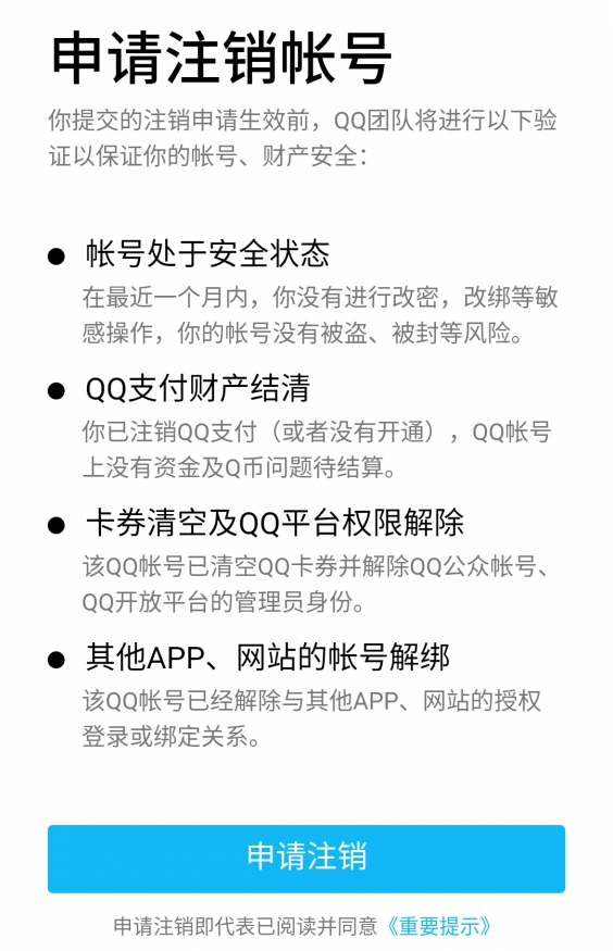 需要注意的是,QQ賬號(hào)注銷(xiāo)是不可恢復(fù)操作,所以在申請(qǐng)注銷(xiāo)之前最好將重要的文件或信息進(jìn)行備份。
