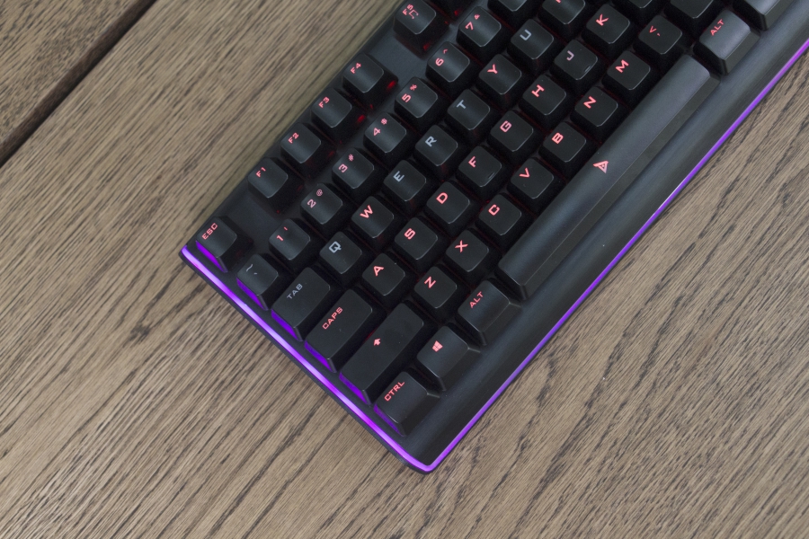 TKM600X的按鍵采用了懸浮式軸設(shè)計(jì),也就是俗稱的無上蓋設(shè)計(jì),比較易于日常清理。鍵帽采用類膚材質(zhì),手感相比傳統(tǒng)鍵盤要順滑許多,鍵帽字符采用激光雕刻,在保證透光性均勻的同時(shí)也保證了不易于磨損。