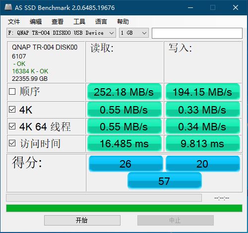 通過AS SSD Benchmark測出的最高讀取速度為252.18MB/s,最高寫入速度為194.15MB/s。