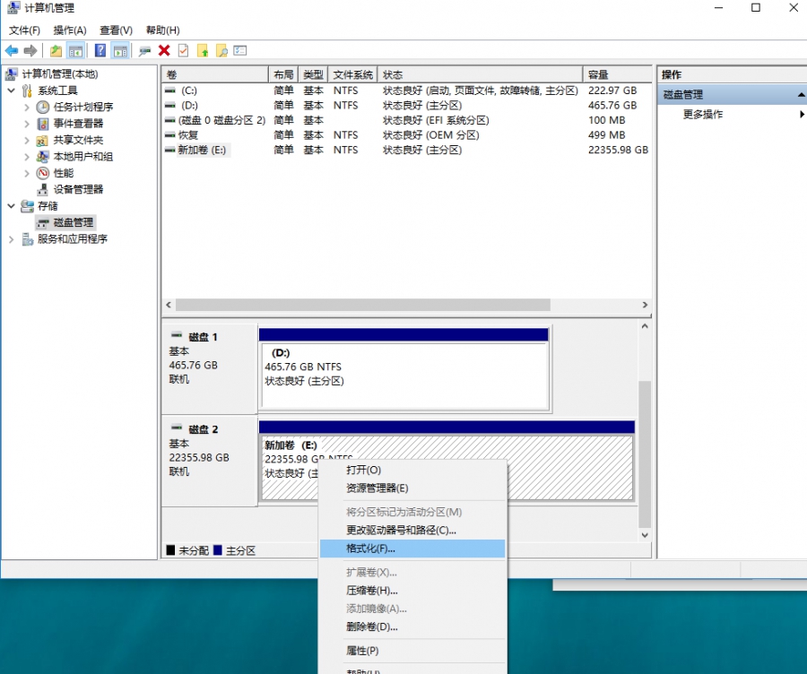 在“硬盤管理”中找到構建的硬盤名稱,然后右擊格式化即可。