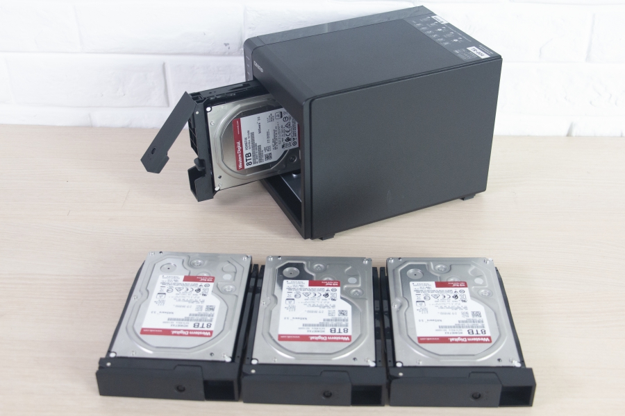 我們安裝的是4塊西部數據紅盤,西部數據紅盤擁有針對NAS需求的NASware技術,對其兼容性、穩定性等特性進行了優化。此外,紅盤的功耗較低,噪音小,比較適合用于長時間的連續工作。