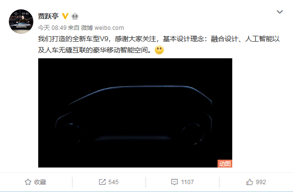 4月4日上午,賈躍亭在微博上宣布了法拉第未來的全新車型V9,并闡述了其基本的設(shè)計理念是融合設(shè)計、人工智能以及人車無縫互聯(lián)的豪華移動智能空間。